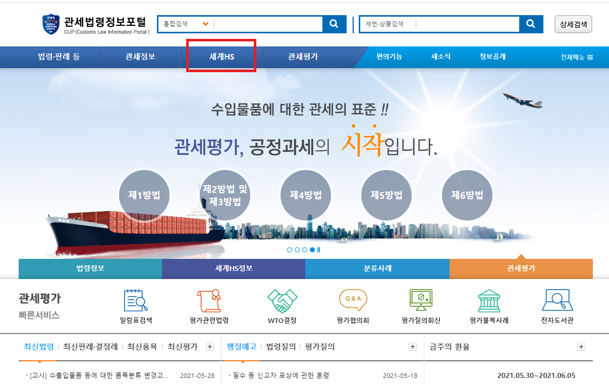 HS코드는 관세청 공식 사이트인 관세법령정보포털에서 확인할 수 있습니다.