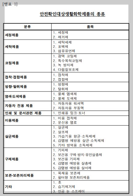 [1] 생활화학제품 적용대상