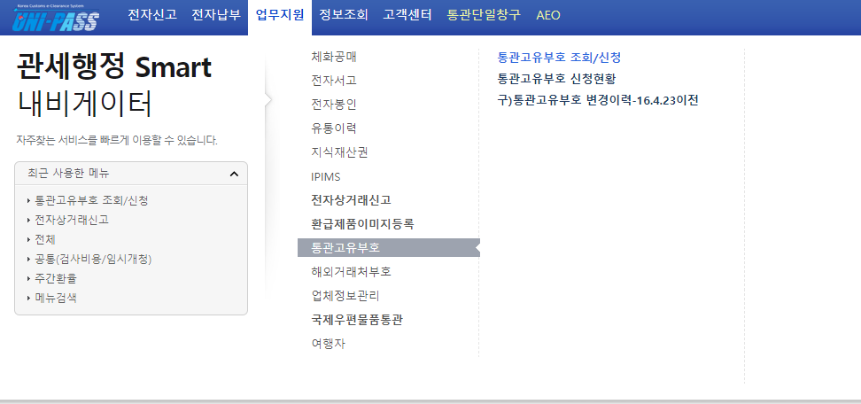 개인 통관고유부호는 유니패스가 아닌 별도 사이트가 있습니다.