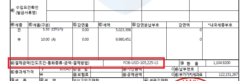 수입신고필증에는 수입물품에 대한 여러가지 정보가 들어가는데요. 결제방법도 그 중 하나입니다.