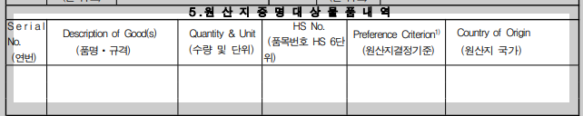 5. 원산지증명대상 물품내역