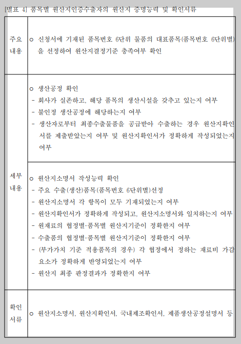 자유무역협정원산지인증수출자운영에관한고시 제10조(품목별 원산지인증수출자 인증요건 심사)