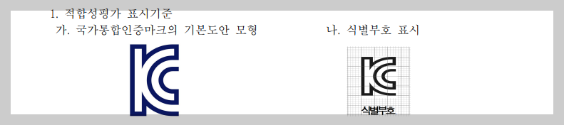 특이한 점은 KC인증 마크 도안에 대한 표시기준과 요령을 비교적 상세하게 규정하고 있다는 점입니다.