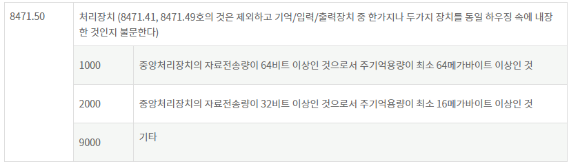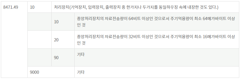 본체와 모니터, 키보드, 마우스가 동시에 시스템 형태로 제시된 것이라면 8471.49호에 분류될 수 있고요. 상세 사양에 따라서 아래와 같이 HS코드 10자리가 결정됩니다.