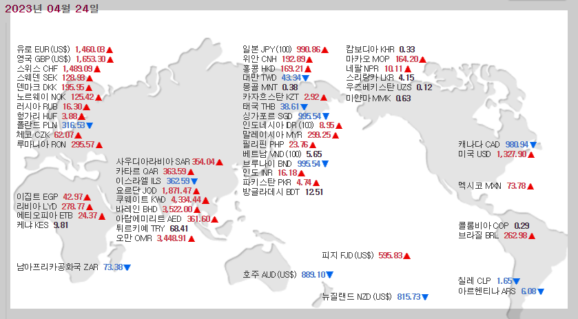 외국환거래시 적용되는 환율은 위에서 정리한 기준환율과 재정환율인데요.