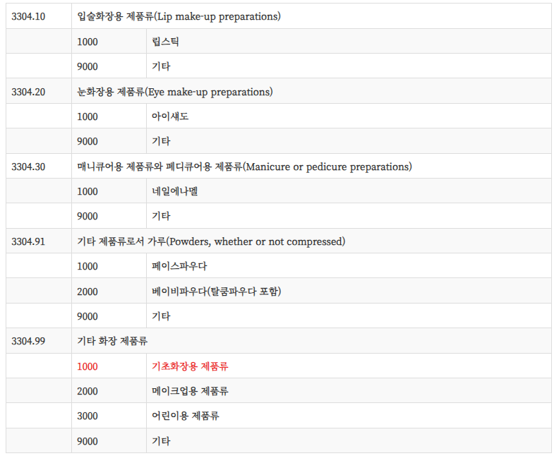 3304호에는 미용크림, 콜드크림, 메이크업 크림, 클렌징크림류를 포함하여 선크림, 선택제품류와 소매용 포장에 넣은 바셀린 등 여러 가지 종류의 화장품이 분류되는데요.