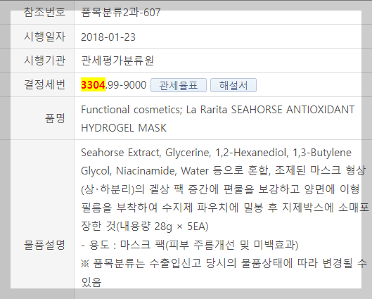 그렇다면 마스크팩은 전부 3307호에 분류해야 하는 건 아닌지..?라는 의문을 가지실 수 있습니다. 저도 그랬거든요.
