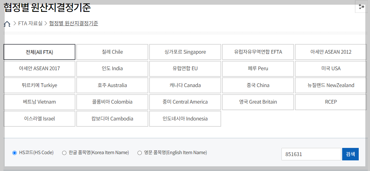 FTA 원산지증명서를 발급하거나 기타 사유로 원산지를 확인해야 할 필요가 있을 때에는 반드시 FTA협정과 HS코드에 따라 원산지결정기준을 확인해야 합니다.