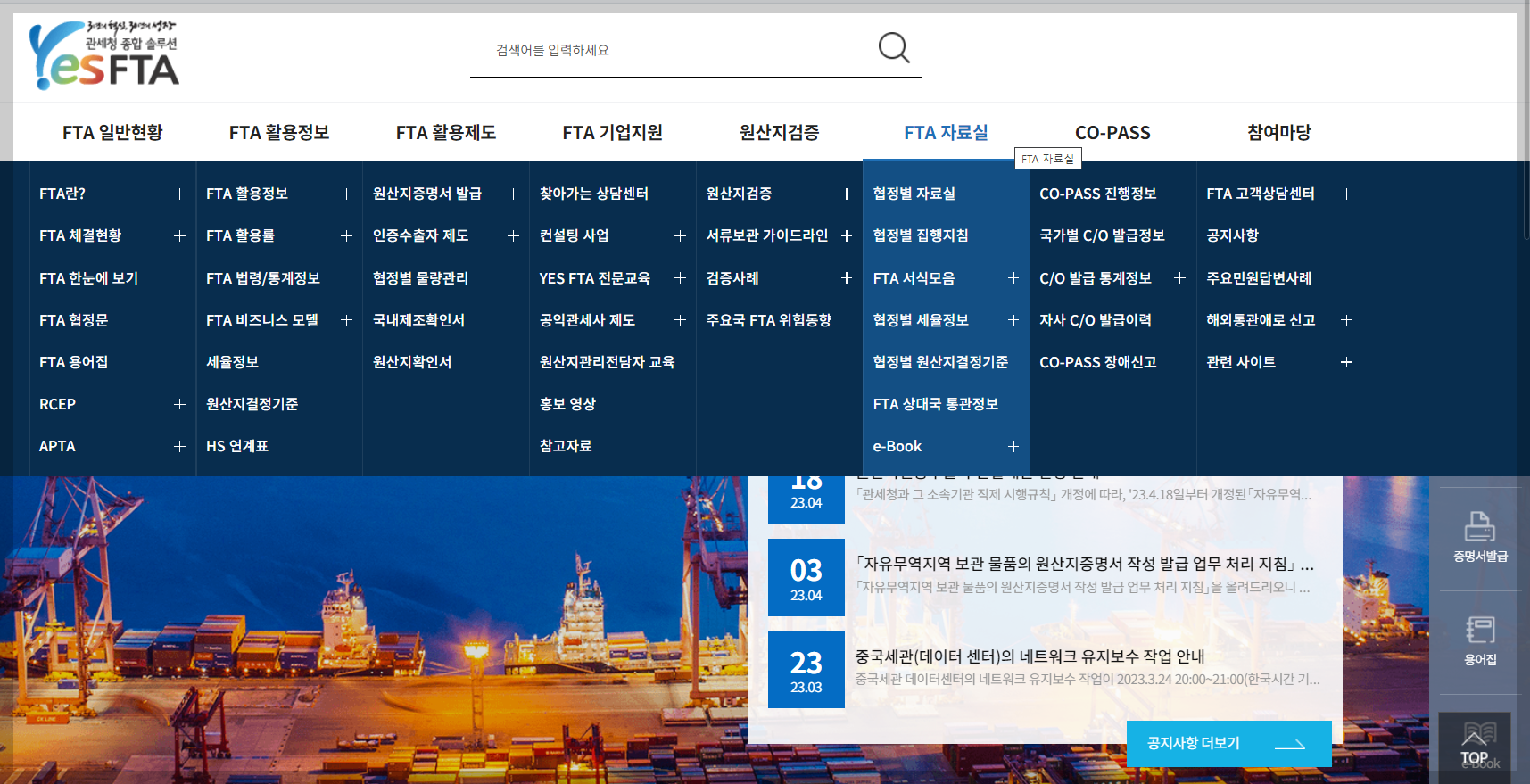 당연하게도 FTA협정별 원산지결정기준은 각 국가와 체결한 FTA협정 원문에 있습니다만, 이 방법은 꽤나 귀찮고 번거롭습니다. 그래서 저는 관세청에서 운영하는 YES FTA 사이트를 자주 활용한답니다. ㅎㅎ