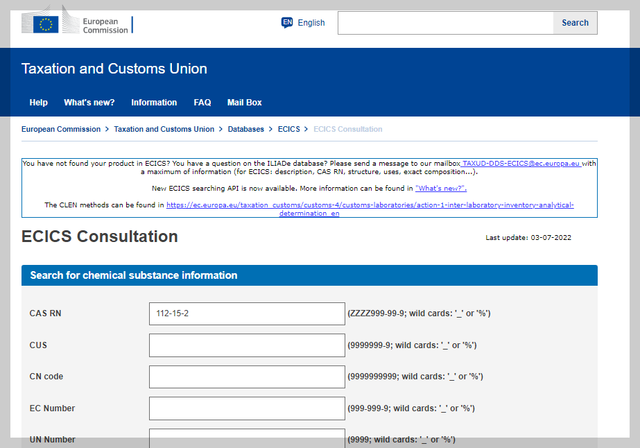 CAS 번호로 HS코드를 확인할 수 있는 사이트가 여러군데 있긴 한데요. 그중 검색결과가 가장 만족스러운 유럽연합(EC) 사이트에서 확인하는 방법을 정리해 봤습니다.
