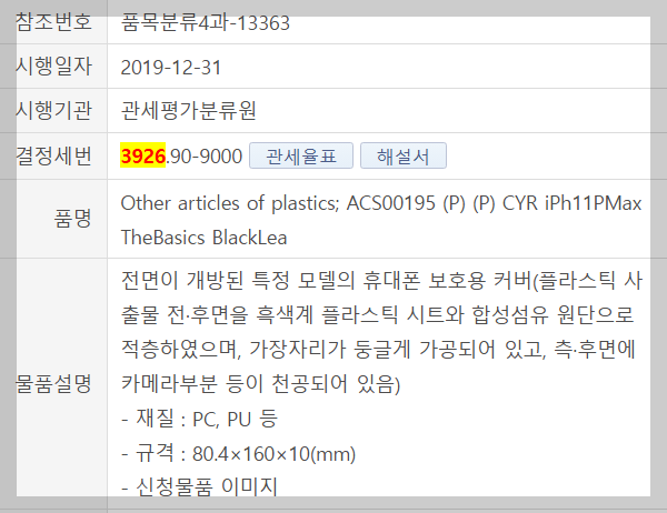 (똑같은 폰케이스여도 형태에 따라 HS코드가 달라진다는 게 참 신기합니다. ㅎㅎ)