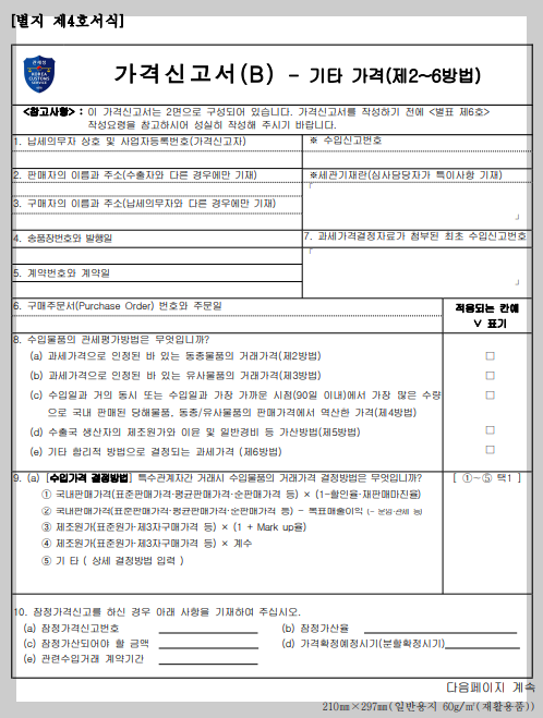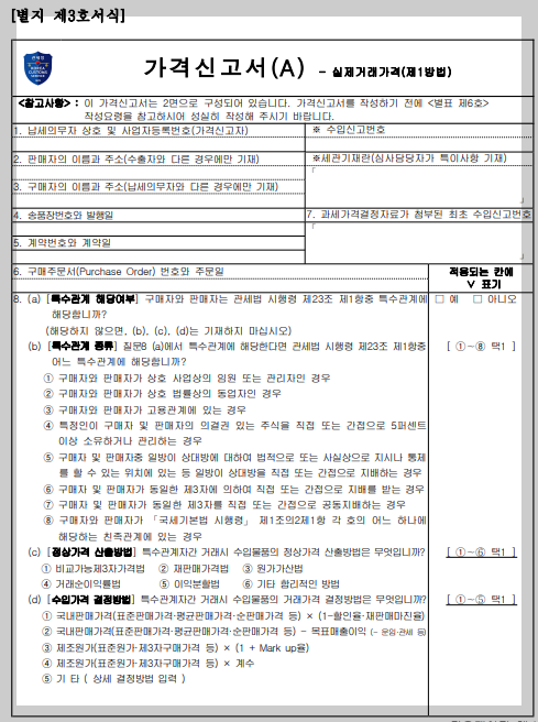 기본적으로 가격신고서를 작성하여 제출해야 하는데요.