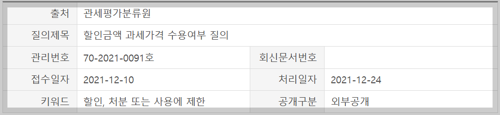 위 [1]번에서 살펴봤던 질의회신 사례는 수입물품을 특정 거래처에게 납품하는 조건으로 물건을 싸게 양도한 것이기 때문에 위 규정의 첫 번째 사유에 해당하게 된 것이죠.